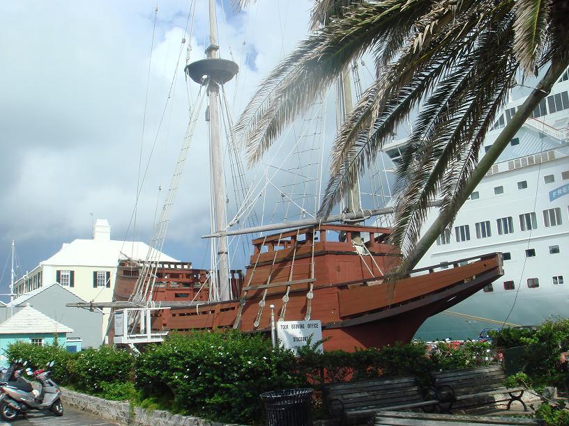 | Bermuda is a dangerous place for sailing, a lot of rocks. "Deliverance", 54´, built 1609-10, was pick up boat for survivors after loss in bad weather. | It´s easy to hire a scooter. | "My" scooter is taking a rest outside the aquarium. |